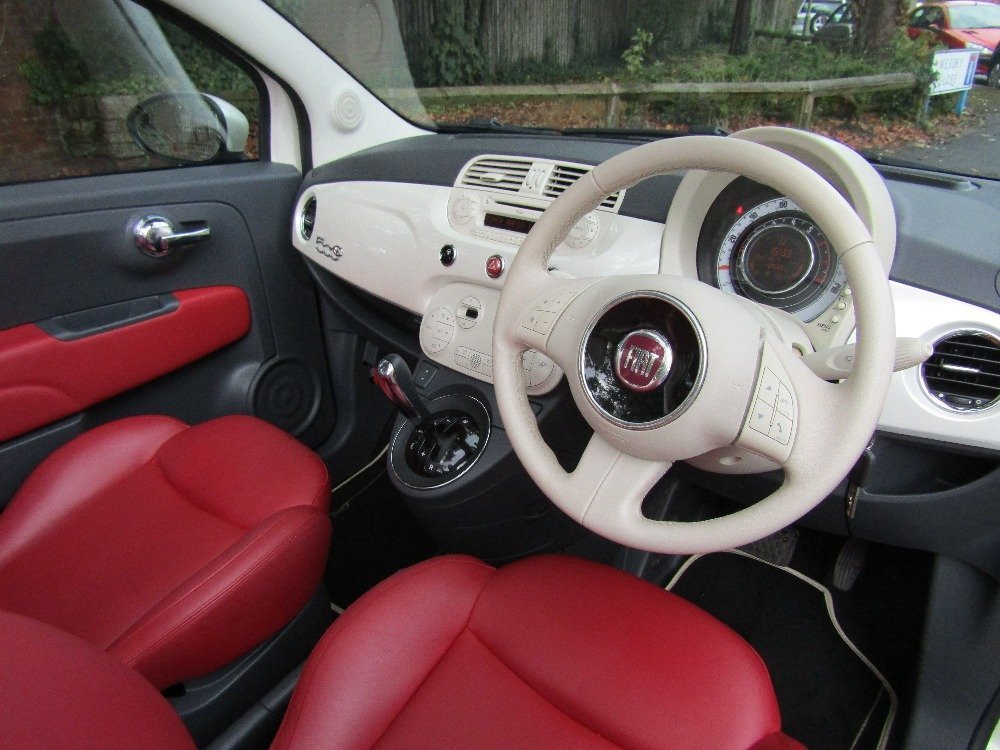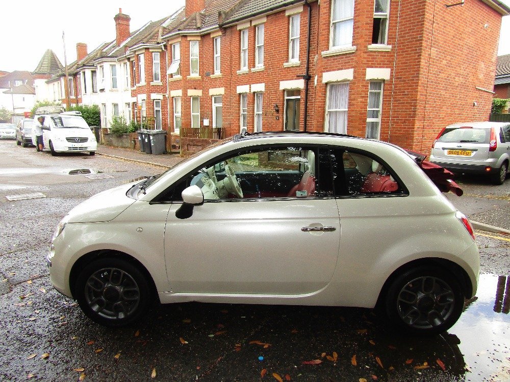 Stunning car, best colour combination! Pearlescent paint/red leather! comes with a long MOT 01/04/17, and 3 months warranty, Service History, Full Red Leather Interior, Leather, Special Paint - Pearl White, Auto Climate Control, Red Power Roof, Ivory Dash, Steering Wheel and Headrests, Air Conditioning, Automatic Climate Control, Leather Steering Wheel with Commands, Radio/CD/MP3 Player, Telephone Equipment (Bluetooth Interface), Foglights, Rear Parking Sensors, 15in - O Sporty Alloy Wheels (Lounge), Blue&Me, Electric Front Windows, Electric door mirrors, Remote central locking, Fiat 500 floor mats, Excellent Condition Throughout, MOT APRIL 2017. 4 seats, White, Very desirable colour, pearlescent a £750 optional extra along with full red leather also a £750 extra! These convertible autos are rare to find, especially with this colour option/model. All handbooks and service book and 2 keys, only 1 former keeper, ALL CARS ARE FULLY VALETED, FULL DEALER FACILITIES, ALL MAJOR DEBIT AND CREDIT CARDS ACCEPTED, EXPERIAN CHECKED, COMPETITIVE FINANCE PACKAGES AVAILABLE, BUY NOW START PAYING IN OCTOBER 2016 WITH MOTONOVO PAUSE PLAN! ADDITIONAL WARRANTIES AVAILABLE, PART EXCHANGE WELCOME, WE ARE LOCATED ONLY 5 MINS FROM BOURNEMOUTH RAIL STATION, CAR IS AT OUR INDOOR SHOWROOMS, PLEASE HAVE A LOOK AT OUR WEBSITE WWW.KJPRESTIGE.CO.UK FOR ALL OF OUR CURRENT CARS,
