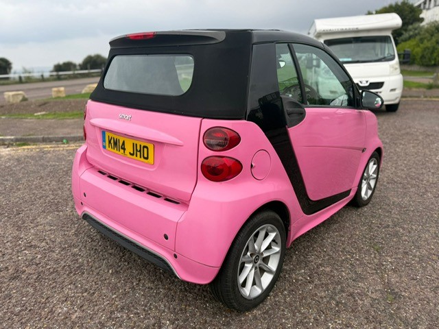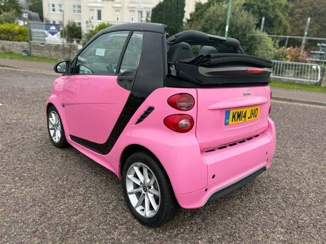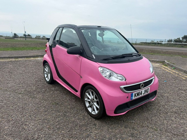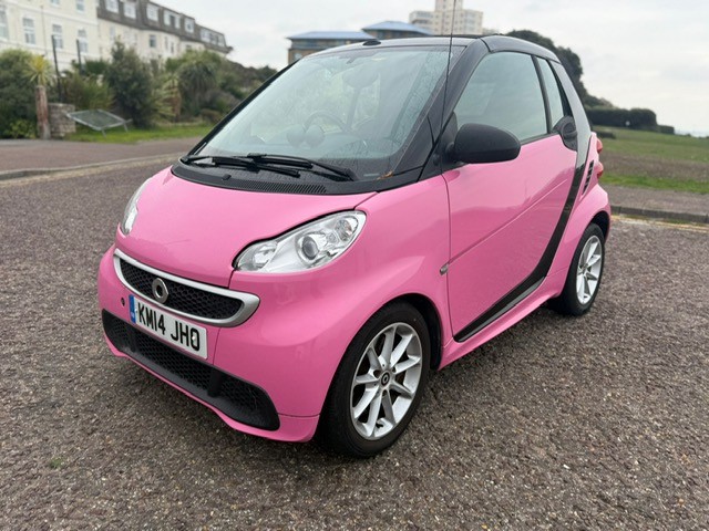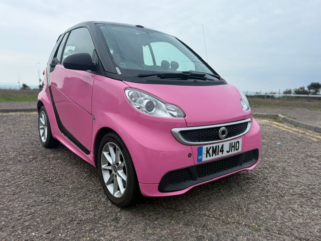 This 2014 Smart Fortwo MHD Passion is a truly exceptional find, Finished in CUSTOM BUBBLEGUM PINK, boasting remarkably low mileage for its age at just 36,000 miles, SERVICE HISTORY X5, and a clear vehicle history check for your peace of mind. MOT 22/05/2026 and comes with our 3 month warranty. Finished in a special tailor made paint, this compact city car is powered by an efficient 1.0L petrol engine. Inside, you'll appreciate the convenience of a storage box, air conditioning with automatic temperature control, and a Bluetooth hands free system for seamless connectivity on the go., , Experience outstanding efficiency with this Smart Fortwo, achieving an impressive 64 miles per gallon, which is significantly better than many other vehicles in its class. Its low CO2 emissions further contribute to its economical running costs. Despite its compact exterior, you'll discover a surprisingly large boot space, making it practical for everyday errands and weekend getaways alike., 2 seats, Pink, 4 owners, Upgrades - Paint - Special Tailor Made Range, Tridion Safety Cell in Black Solid Paint, Fabric - Design Black, Storage Box, Standard Features - Remote Roof Release via 3-Button Key, RDS Radio with 6.5 Touchscreen Display, Audio System Navigation-Multimedia Highline, Bluetooth Hands-Free System, CD-DVD-SD player, Aux-USB, 15in Alloy Wheels - 9-Spoke, Automatic Hill Start Assist on Uphill Slopes, Air Conditioning with Automatic Temperature Control, Electric Windows, Central Locking with Radio Remote Control, Immobiliser, Body Panel Plus Package - Front-Rear Apron and Side Skirts in Body Panel Colour, Airbag - Full Size Driver, Airbag - Full Size Passenger, Steering Wheel - 2-Spoke-Leather and Leather Gear Knob, Gear Knob - Leather, 12 Volt Socket with Cover, Instrument Cluster with Multi Functional Display, Comfort Windscreen Wipers with Speed Sensitive Interval Wiping and Automatic Wipe-Wash, Crash Elements at Front and Rear, Crash Sensor Auto Switch-On of Hazard Warning Lights, Drive Lock - Automatic Door Locking when the Vehicle is in Motion, ABS - Anti Lock Braking System, EBD - Electronic Brake Force Distribution, ESP - Electronic Stability Programme with Hill Start Assist, Headlights - H7 Projection, Make Up Mirror in Passenger Sun Visor, Heated Rear Window, Interior Lighting, Electric Tailgate Release, Luggage Compartment Cover - Retractable, Passenger Seat Backrest Foldable Down For Through Loading, Safety Seats with Integral Seat Belts, White Side Indicators, Silver Grille Surround, Storage Compartment in Tailgate, Third Rear Brake Light, 2 KEYS AND BOOKPACK, Warranty option to upgrade with Warranty Wise, AWARDED HIGHLY RATED FROM AUTOTRADER 2021, 2022, 2023, 2024 and 2025! WE ARE A FAMILY RUN BUSINESS WITH OVER 30 YEARS EXPERIENCE IN THE CAR TRADE, FINANCE AND PART EXCHANGE OPTIONS AVAILABLE,FULL DEALER FACILITIES, CHECK OUR REVIEWS! ONLY 5 MINS FROM BMTH RAIL STATION, WWW.KJPRESTIGE.CO.UK,